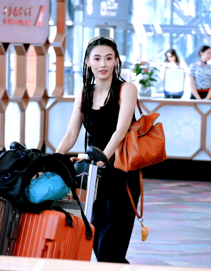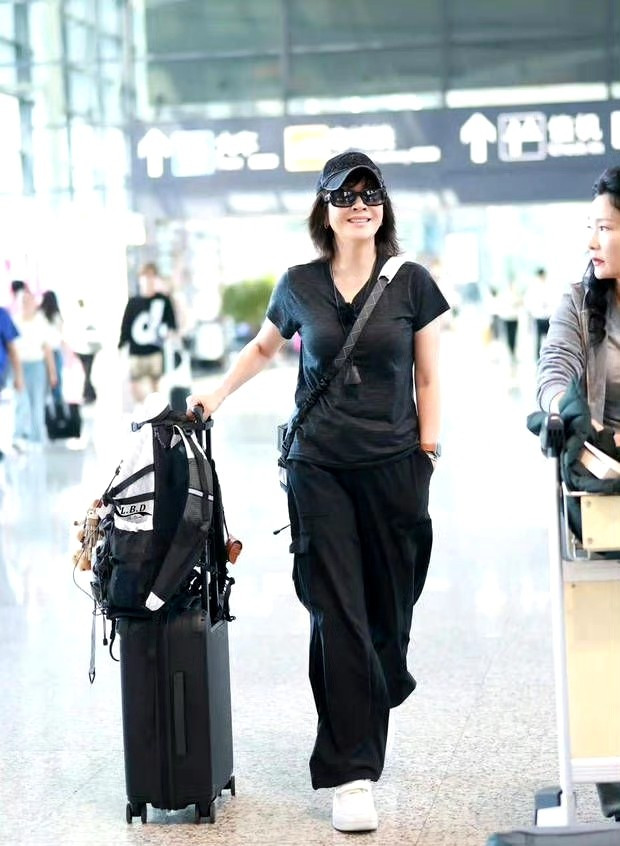 刘嘉玲则是一身黑色套装霸气十足,亮相机场时走路都是带风的。