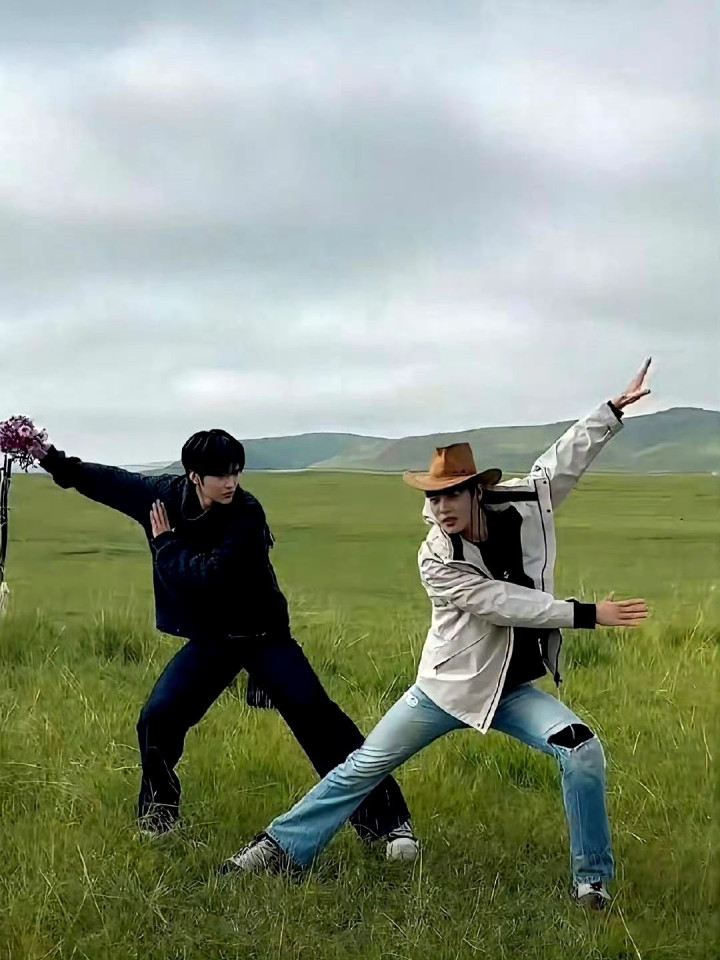 还有草原上摆出神似老年人旅游照的姿势拍照,随便一帧截下来,都跟邵子恒这张脸看起来很违和。