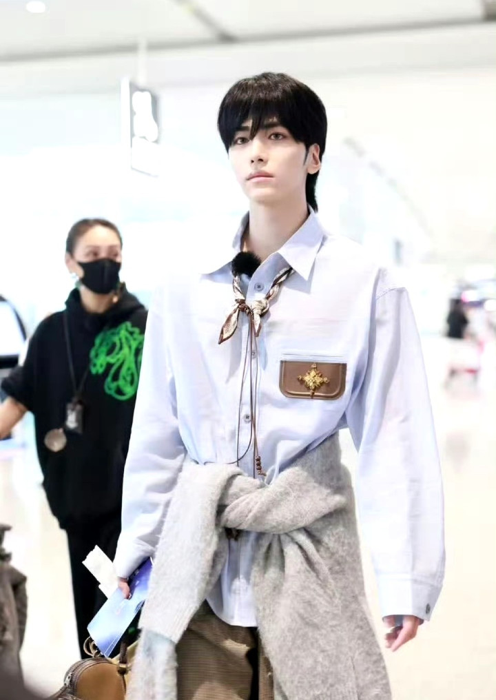 柯淳则是帅气男大即视感,休闲套装加身,全靠长相和身材支撑,由于个头高挑,走在人群里也很有辨识度。