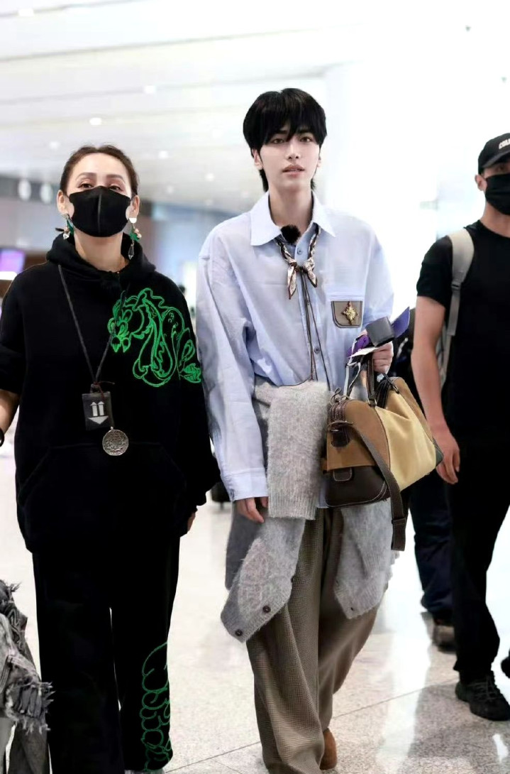 宁静则是走酷girl路线,出发时黑色卫衣搭配编发,看起来又酷又有范。